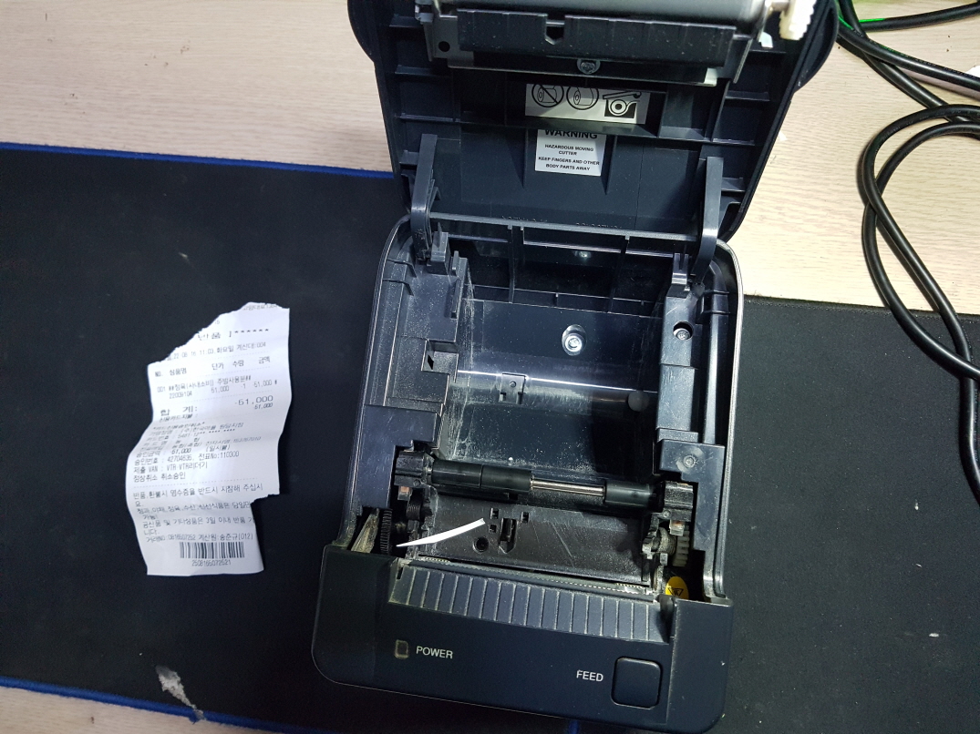 영수증 출력후 흐리게 인쇄되는 문제로 헤드 교체 진행합니다.