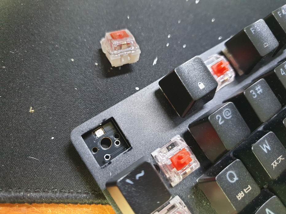 단순 스위치 파손 불량으로 교체 수리 진행합니다. 추가로 사용하지 못하는 키캡은 범용키캡으로 교체 진행합니다.
