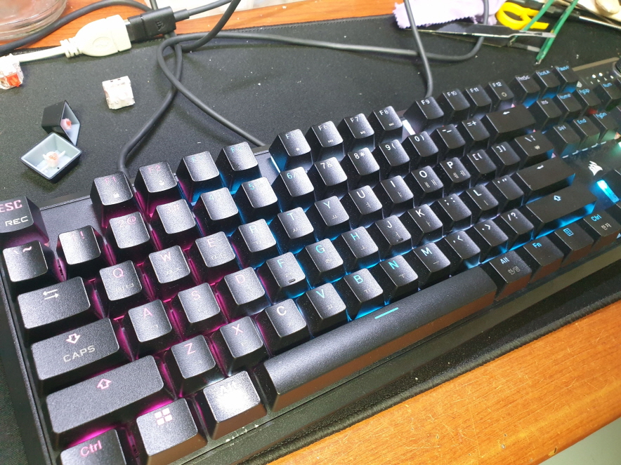 수원시 장안구에서 ESC 왼쪽ALT 우측 숫자키패드쪽 / * 파손불량으로 Corsair k70 rgb CORE RGP0169 커세어키보드 해외직구 사설 수리 고장 AS