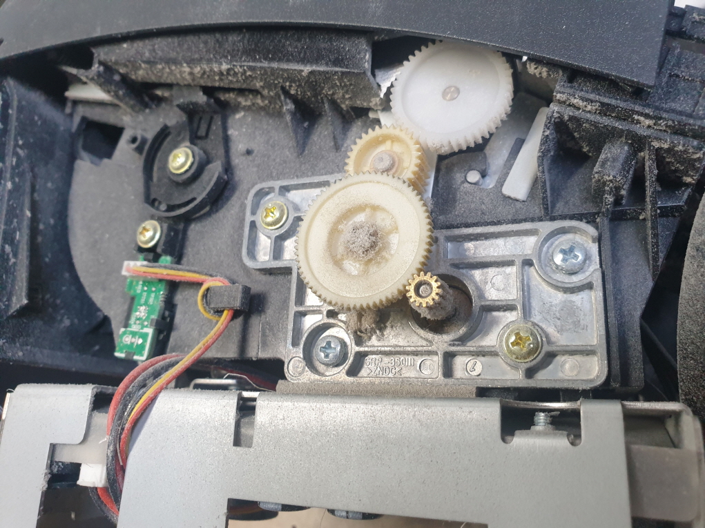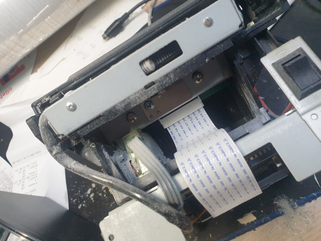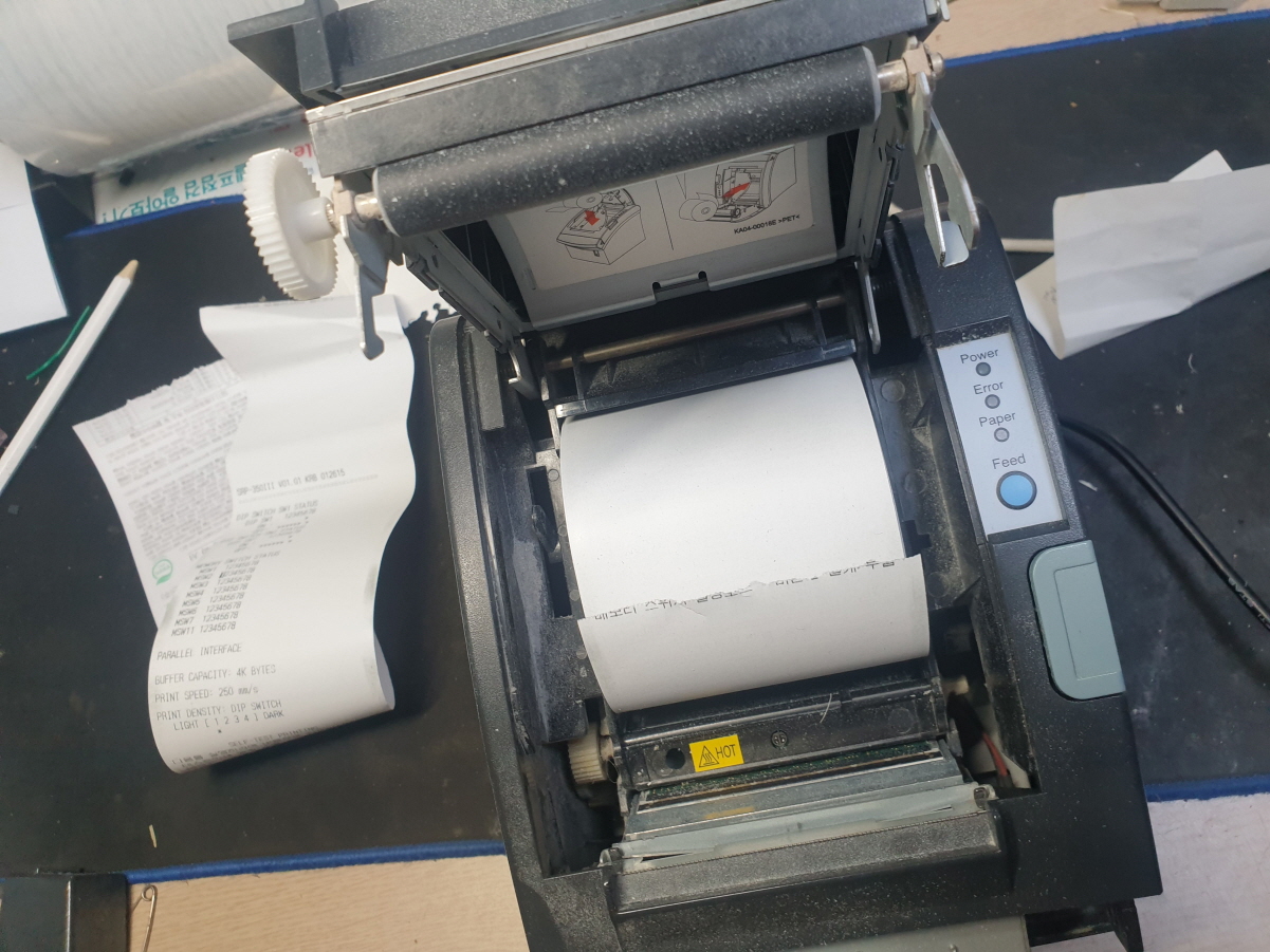 영수증 출력후 영수증컷팅 절단이 안되는 문제로 수리 진행합니다. 오토커터쪽에서 나는 냄새로 보여집니다...