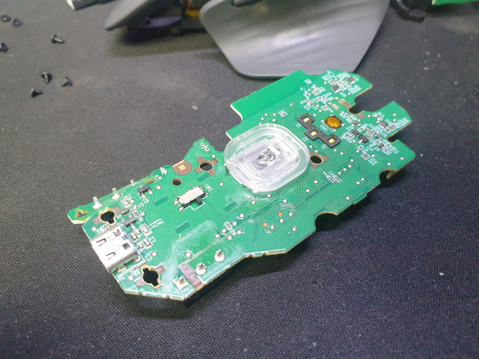 왼쪽버튼 더블클릭 증상인 버튼내 스위치불량으로 새 스위치 D2FC-F-7N(100M) 좌우교체 수리 진행합니다.