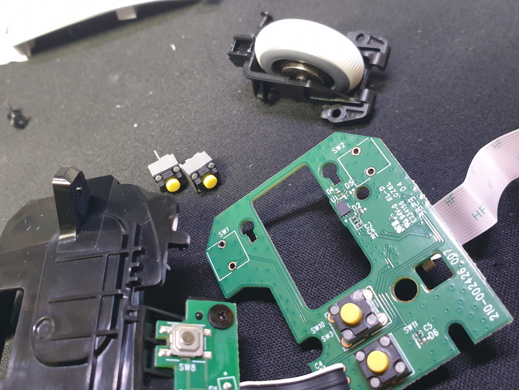 좌버튼 간헐적 안눌림인 버튼내 스위치불량으로 새 스위치 카일 저소음옐로우스위치 좌우교체 수리 진행합니다.