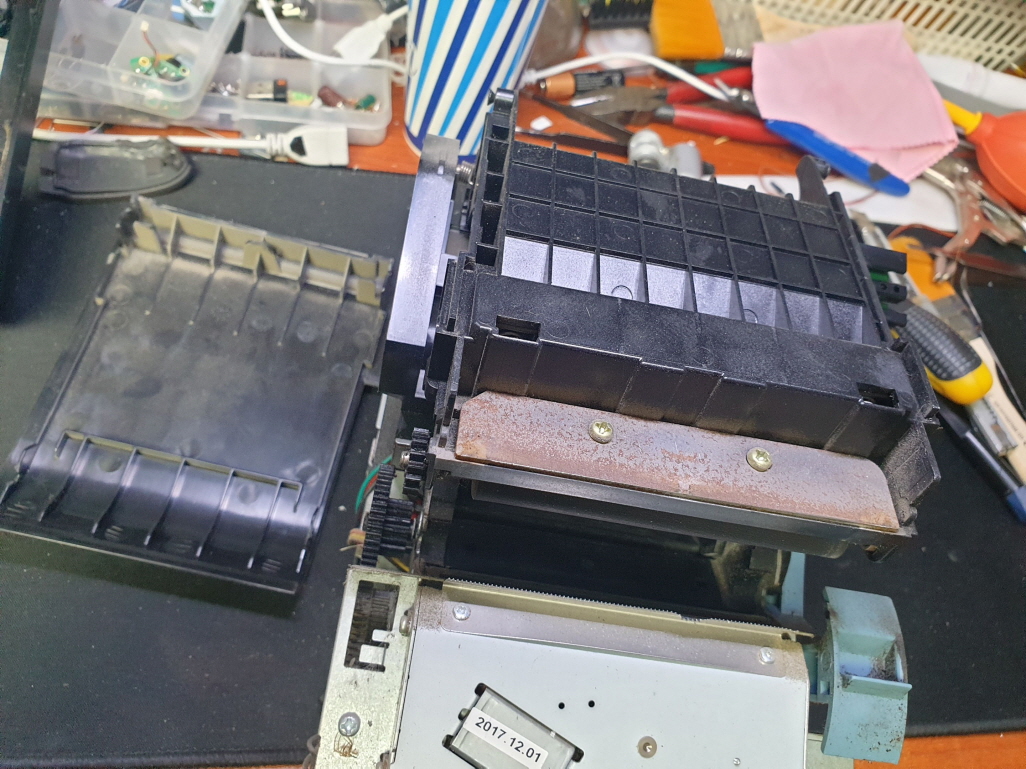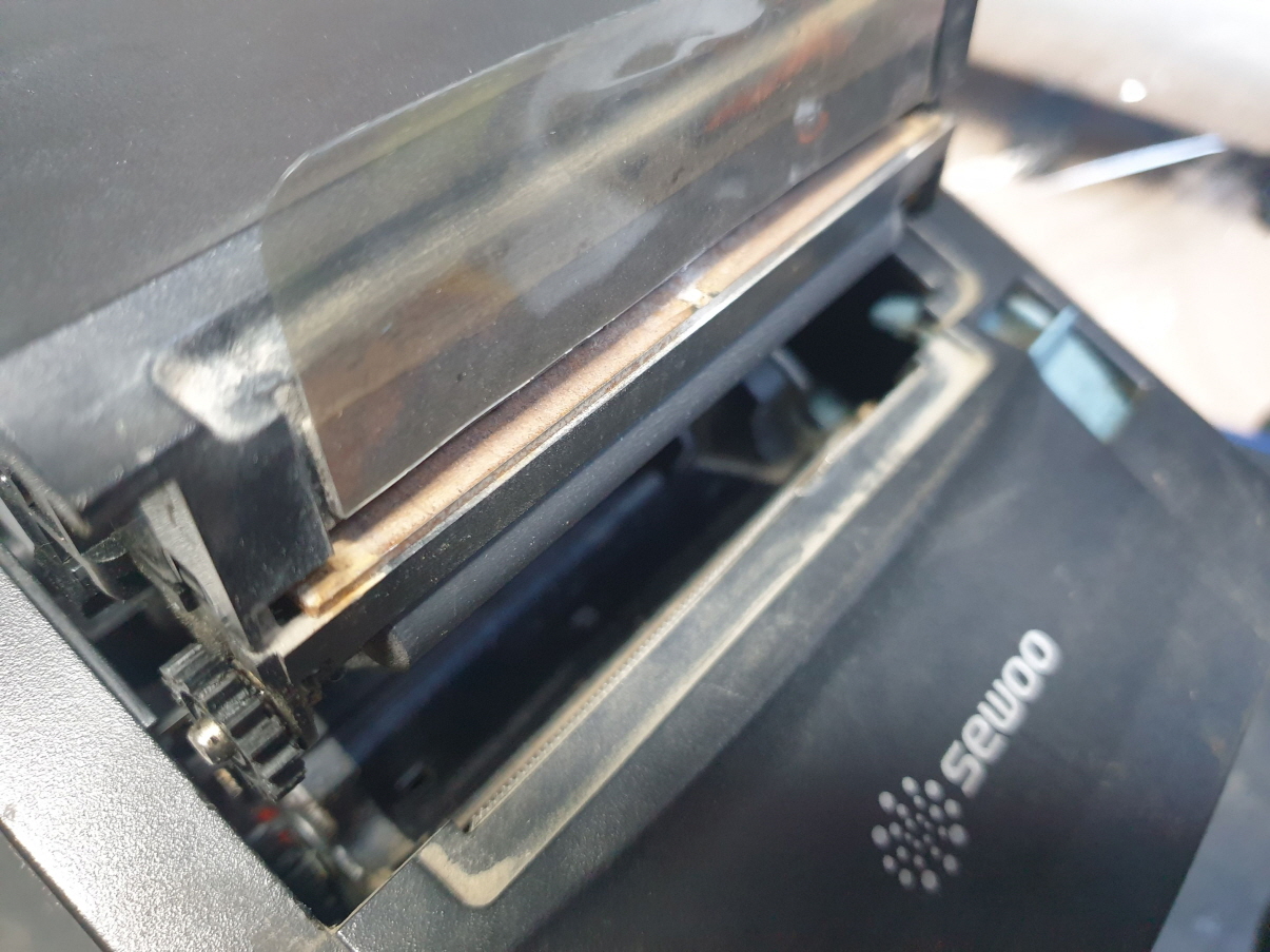 고객님께서 "용지컷팅부위 이빨이 나가서인지 컷팅이 안되고 영수증도 걸려서 나오지 않음 뚜껑도 잘 안 열리면서 뚜껑 플라스틱 부분이 분해가됨" 으로 수리요청해주셧습니다.