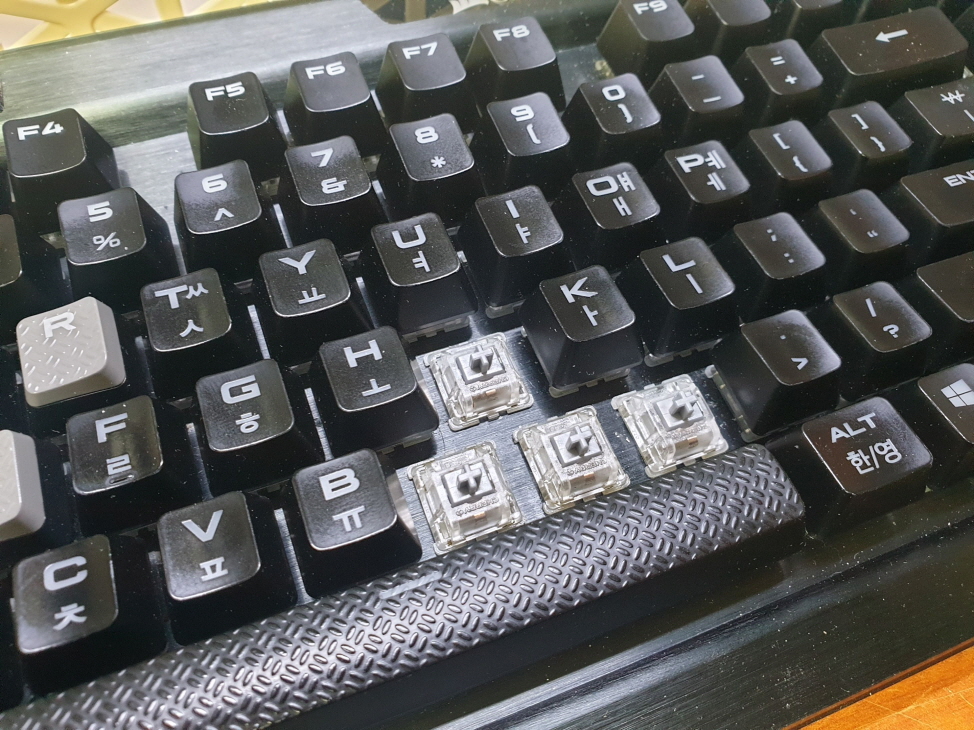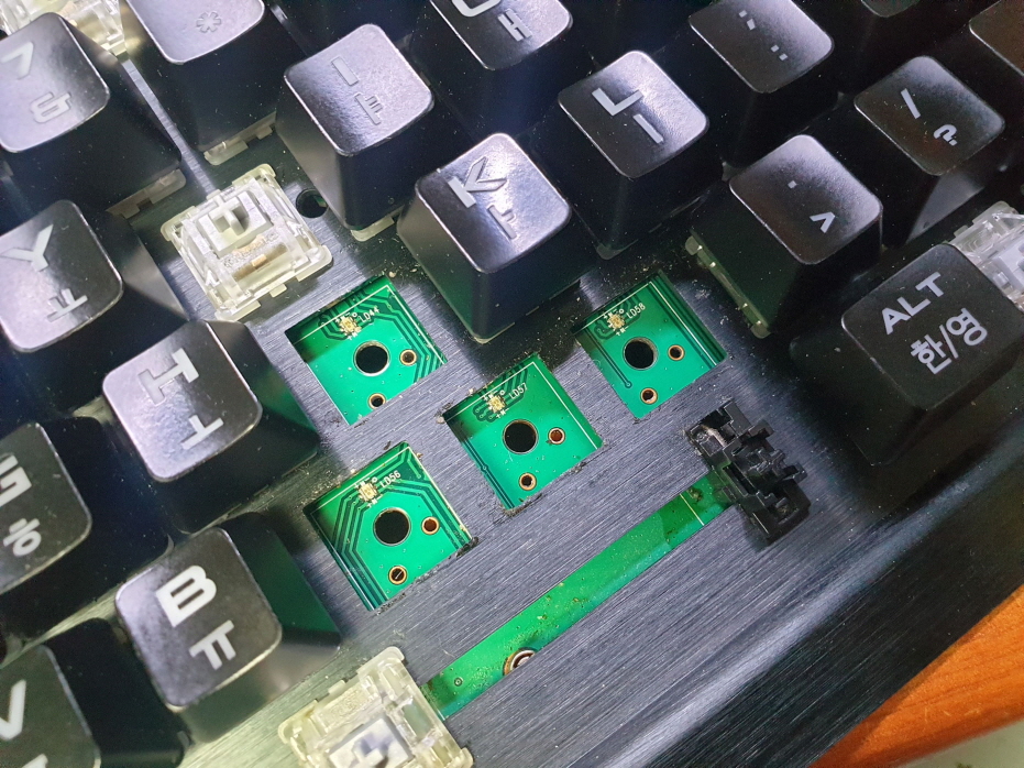 고객님께서 "키보드 스위치 내 커피유입으로인해 당분으로 인한 뻑뻑함발생 J M N < 키 총4개 교체요청"으로 수리요청해주셨습니다.