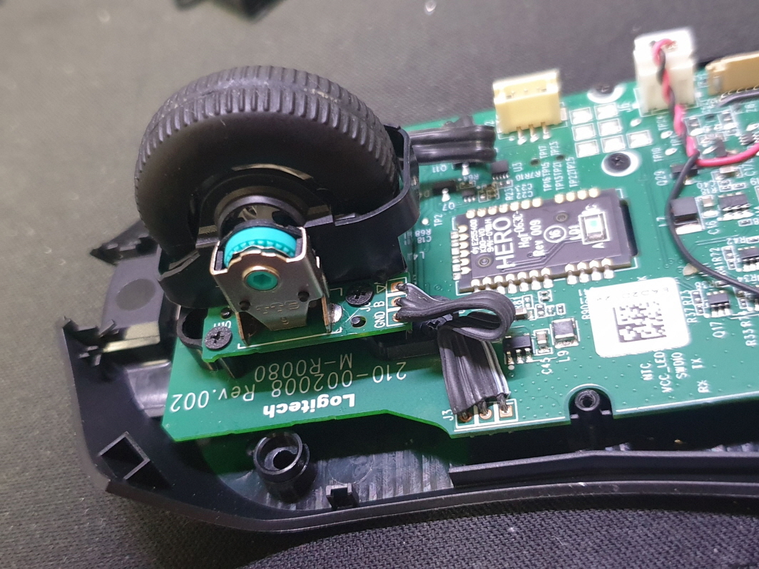 위 아래로 스크롤잘안되며 튕기는증상인 휠센서 불량으로 교체 수리 진행합니다. 추가로 좌우스위치도 함께 교체 진행합니다.