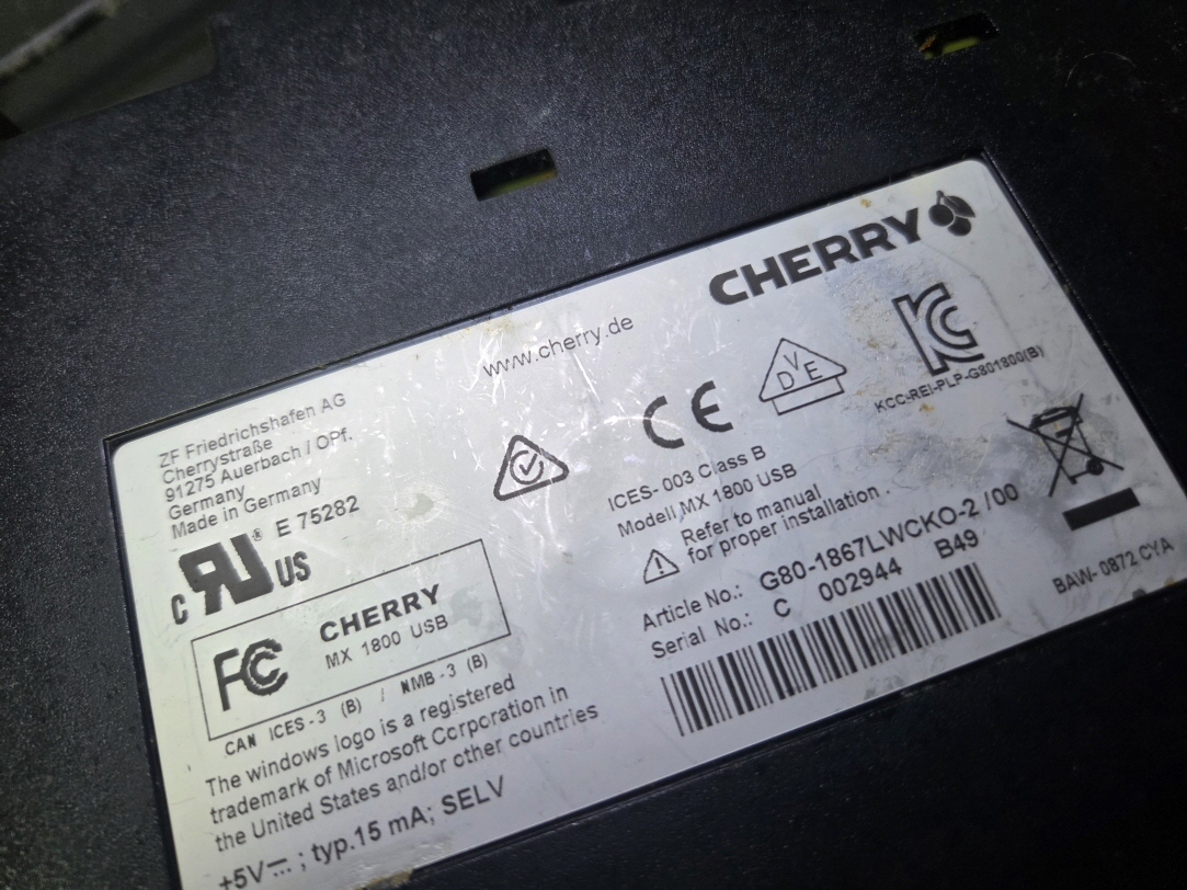 강원도 원주에서 버튼안먹힘 버튼스위치파손으로 택배입고된 CHERRY MX 1800 USB G80-1867 체리키보드 해외직구 사설 수리 고장 AS