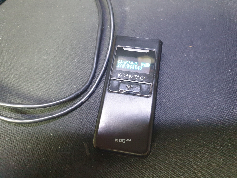 대전 중구에서 빨간 레이져 선이 한점으로 모임으로 코암텍 KDC250 포스 유통 제조 택배 바코드 스캐너수리