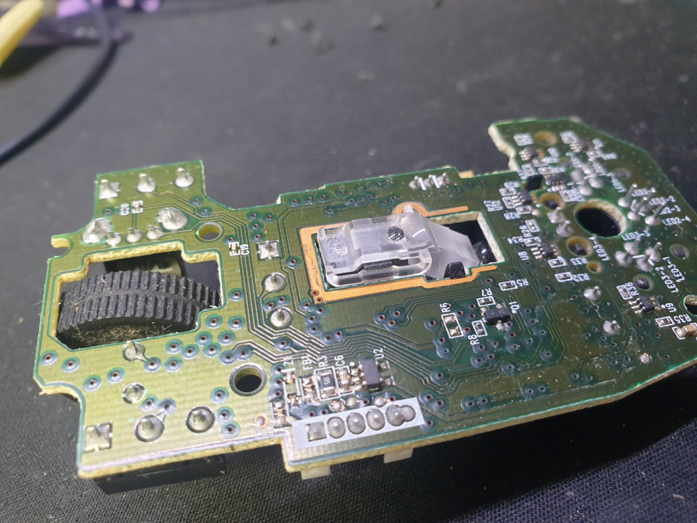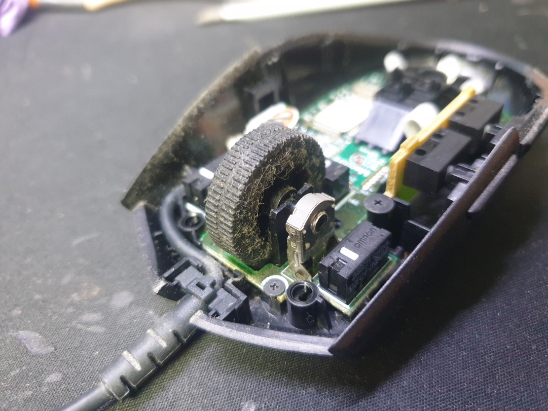 휠센서불량으로 휠센서교체수리 진행합니다. 휠센서불량은 휠팅김, 스크롤시 위아래로 잘 안움직이거나 아예 반응이 없는 경우 발생되는 현상이며 센서교체후 정상적인 사용이 가능합니다.
