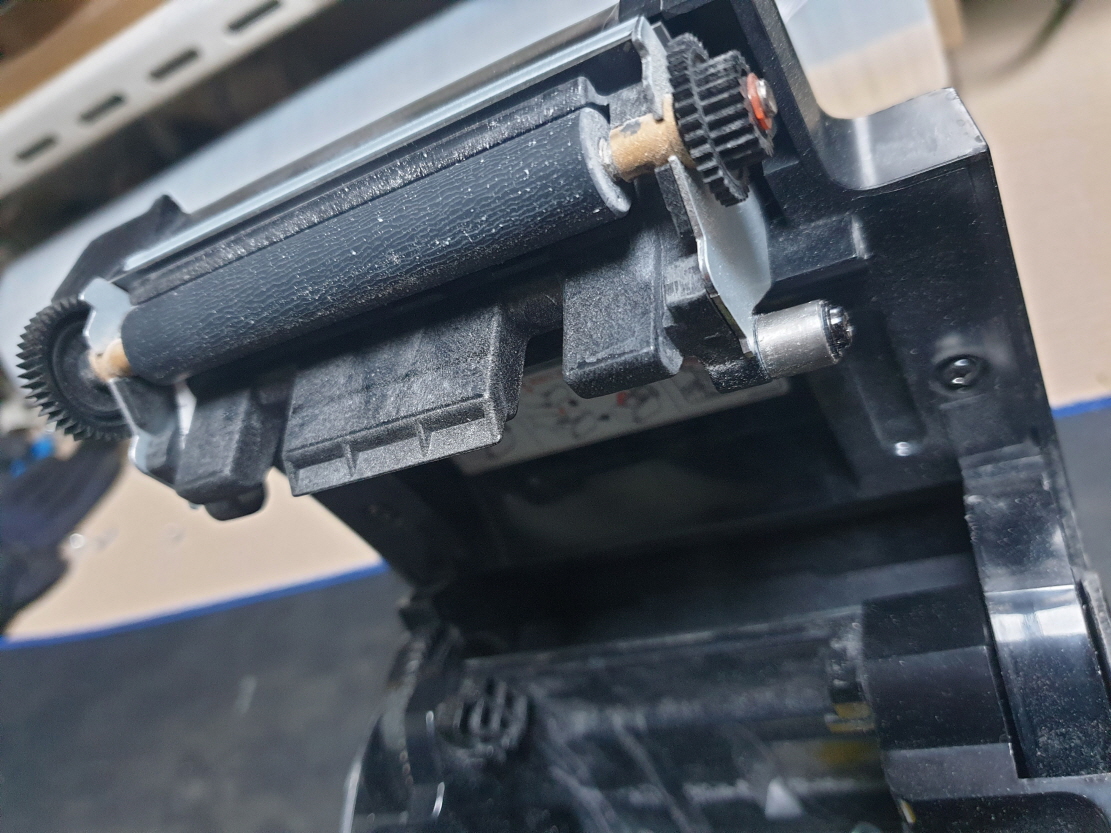 덥개가 열리지않는 문제로 수리 진행합니다. 추가로 인쇄불량으로 메카교체진행합니다. 메카교체진행해도 왼쪽 혹은 오른쪽이 흐리게 나오는 경우는 덥개 혹은 롤러파트부분 불량이 있겠습니다...