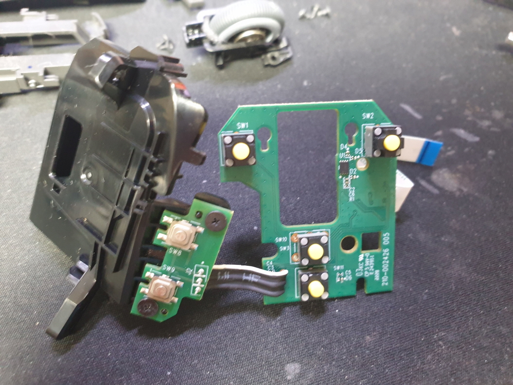 단순 스위치 불량으로 새 스위치 카일 옐로우축 좌우교체 수리 진행합니다. 추가로 휠버튼(스위치) 씹힘으로 같이 교체 수리 진행합니다.