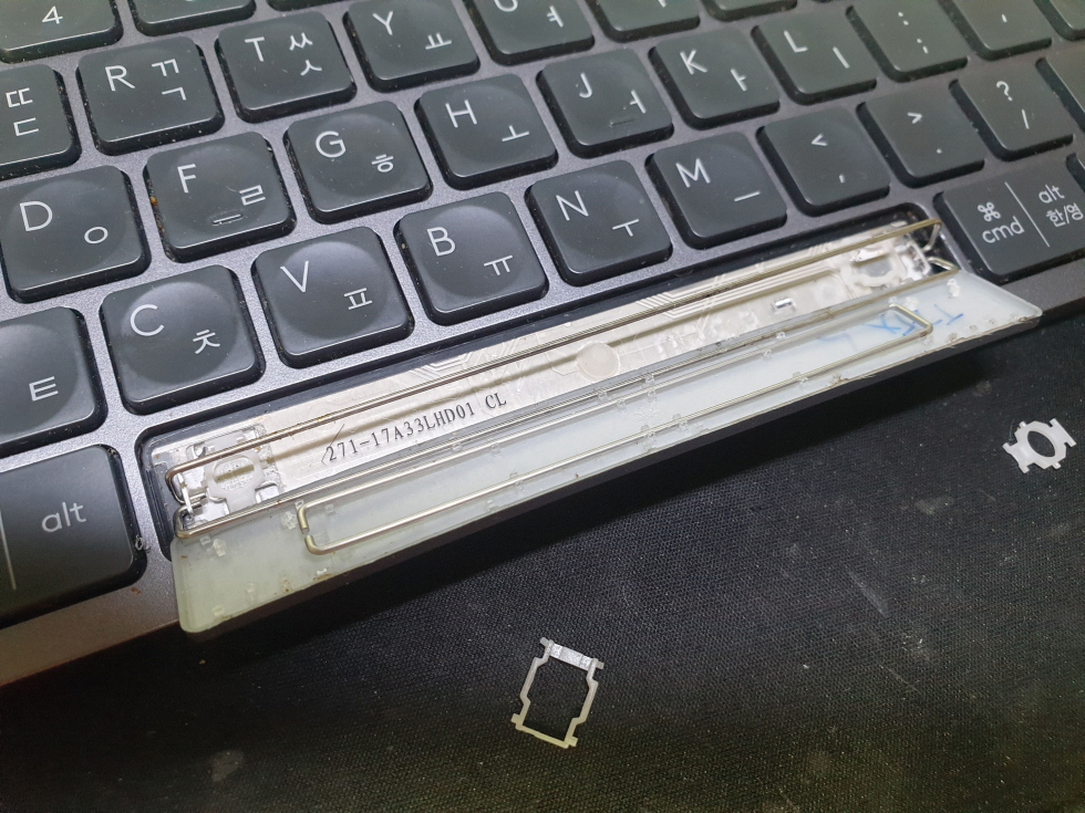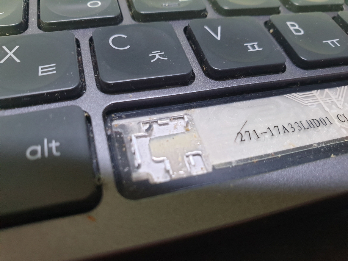 고객님께서 "스페이스바 키보드 겉세 훼손으로 탈착되어 수리요청" 으로 수리요청해주셨습니다.