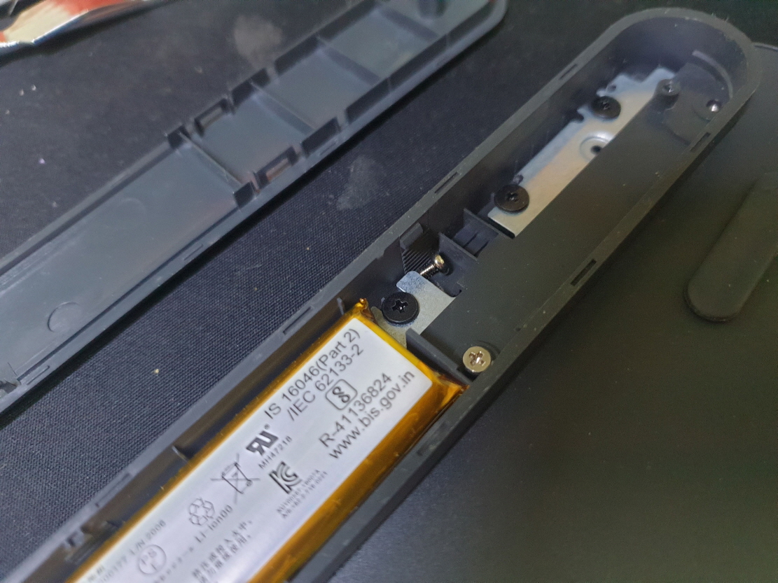 제품내 나사 굴러다니는 소리가 나와 나사 체결후 마무리합니다. 굴러다니는 경우 바닥에 꾸준히 놓고 사용하시면 상관이 없겠으나 키보드 이동이 잦은 경우 꼭 체결해주세요...바닥면 고무3개 떼고 나사3개 풀고(검정필름떼고) 틈새찾아 그냥 제끼세요...풀어진 나사만 체결하지 마시고 비슷한 크기,위치를 확인하여 다른 나사도 확인해주세요...