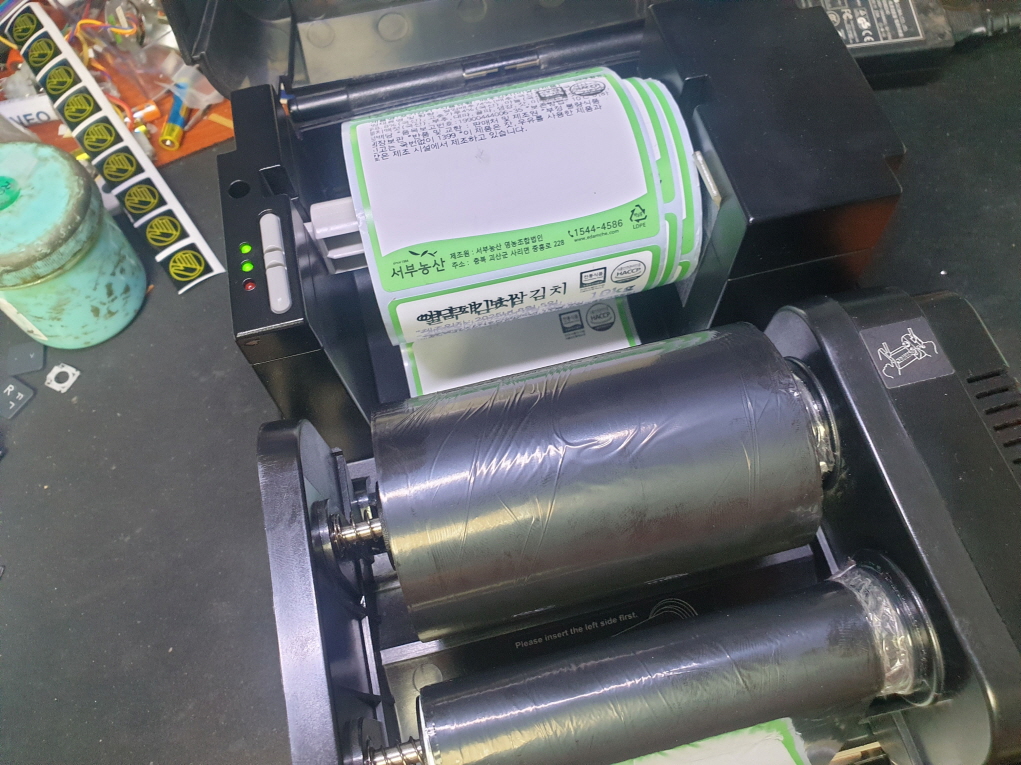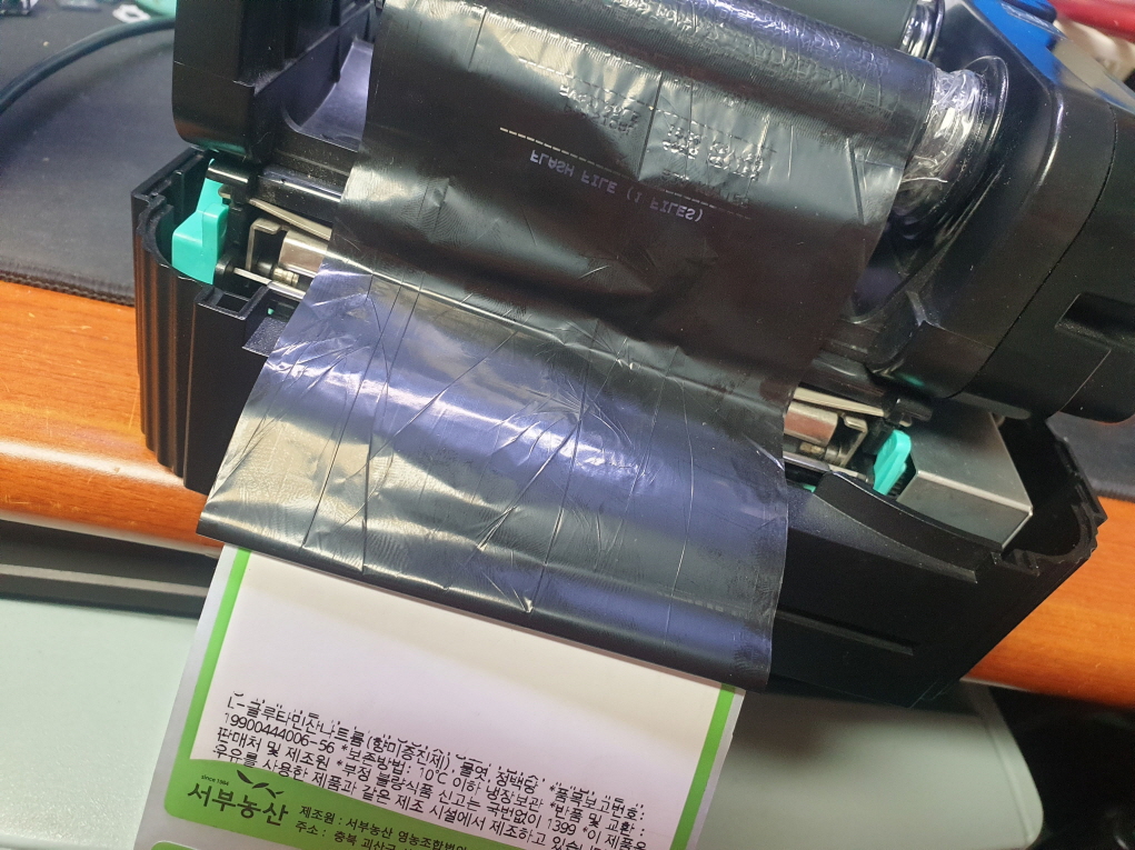 충북 괴산군에서 리본먹지딸려나옴으로 TSC TTP-244Pro 유통 라벨 송장 바코드 프린터수리