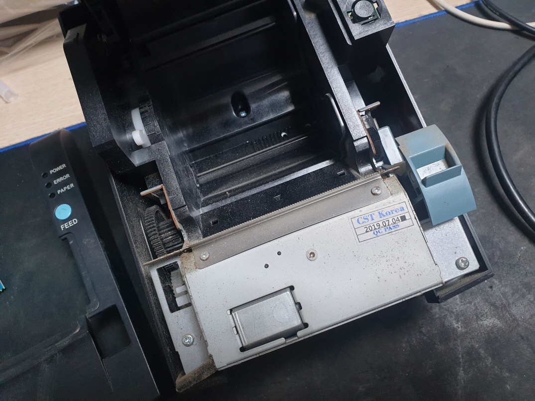 영수증 인쇄시 인쇄가 안되는 백지로 출력되거나 용지컷팅도 안되는 문제로 수리 진행합니다.