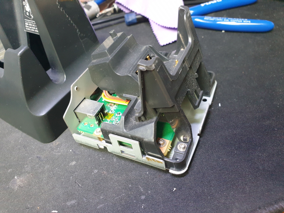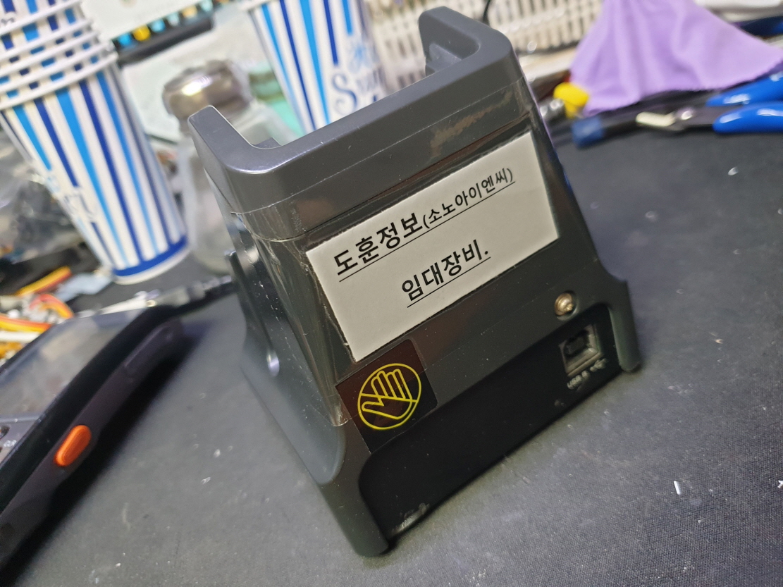 핸드터미널 거치시 녹색불은 들어오는데 컴퓨터 인식안되는 문제로 수리 진행합니다.