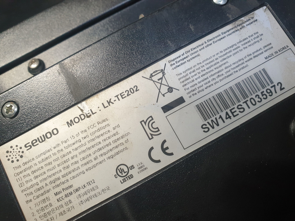 경기도 이천에서 뚜껑불량(안열림)으로 Sewoo LK-TE202 포스 셀프주유소세우테크프린터 사설 수리 고장 AS
