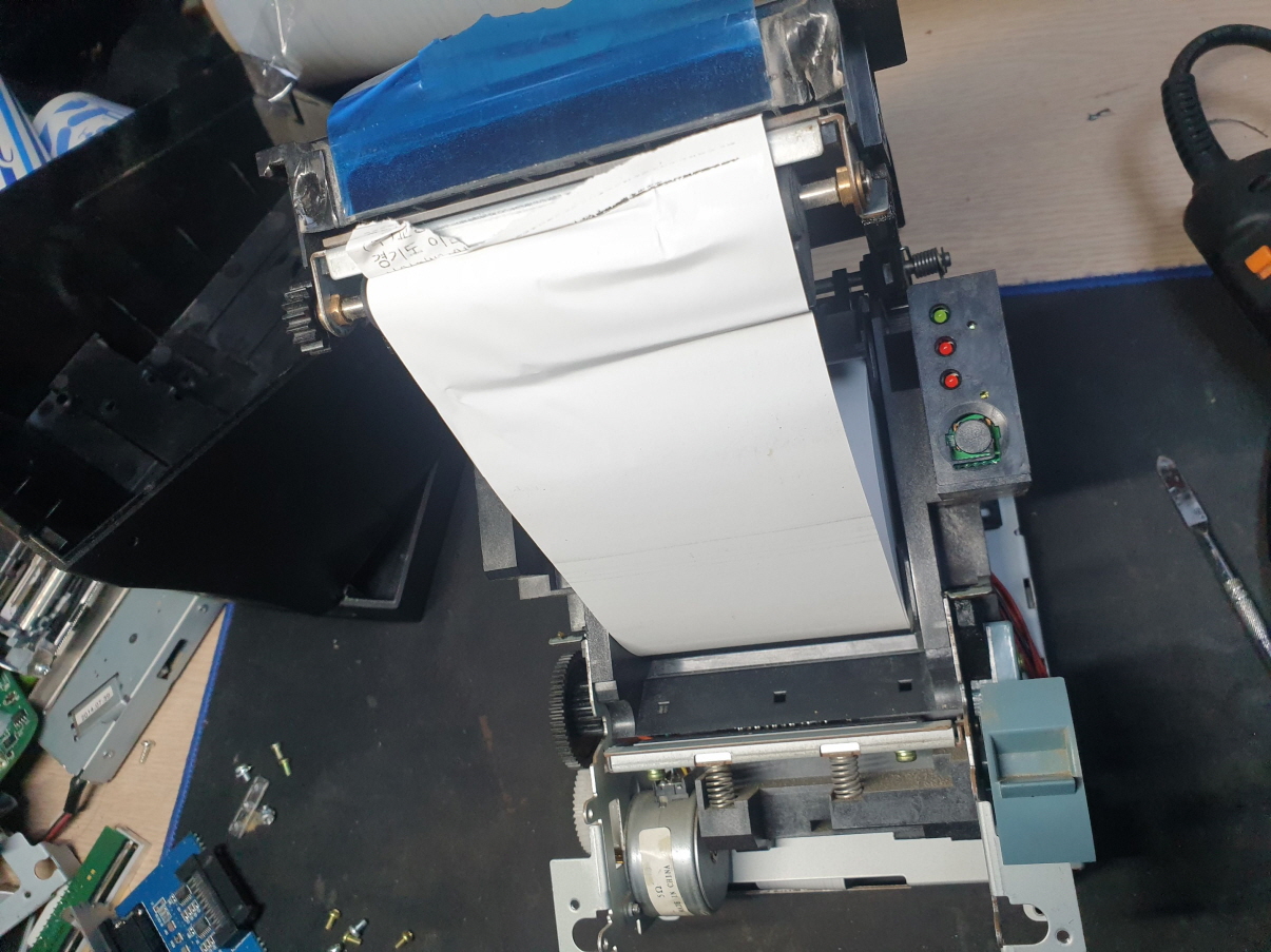 영수증 출력후 영수증 컷팅이 잘 안되거나 용지가 안에서 말리는 문제로 수리 진행합니다.