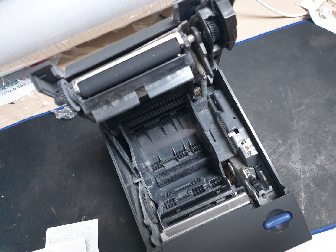 영수증 출력후 인쇄물이 흐리게 잘 보이지 않게 인쇄되는 문제로 수리 진행합니다. 해당 출력물은 인쇄헤드 손상으로 헤드 교체 진행합니다.