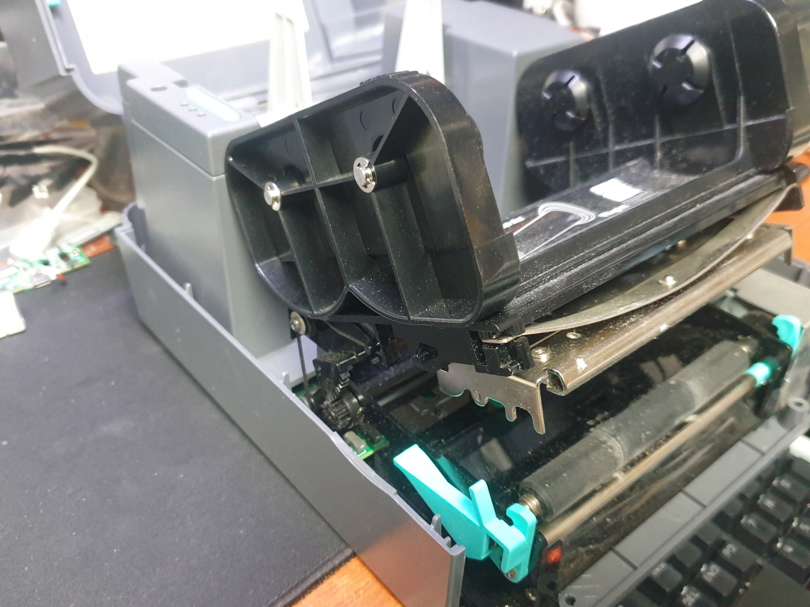 리본사용을 안하고 감열지만 사용하는 업장에서 인쇄물이 흐리게 인쇄되는 문제로 수리 진행합니다. 리본(먹지)를 사용하는 이유는 리본(먹지)를 사용안하고도 감열지로만 인쇄가 가능합니다. 단, 감열지로만 인쇄가 되는 경우 인쇄물이 오래가지못하고 흐리게 변색되거나 아예 글씨 자체가 없어지는 경우 휘발된다고해야겠습니다...리본(먹지)를 사용하는 경우 인쇄물이 5년이상 지속이 되며 어떤 리본(먹지)는 방수형태를 띠는 리본도 있습니다. 현장에 맞게 혹은 해당 시스템에 맞게 사용하시면됩니다. 리본과 라벨지 조합이 맞아야 정상적인 인쇄물을 얻을수 있습니다.