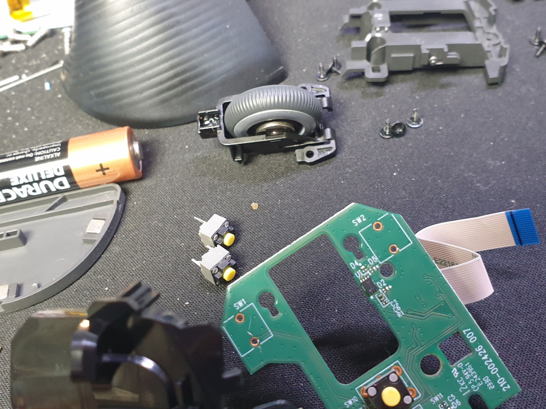 왼쪽버튼 꾹눌러야 인식되는 버튼불량인 스위치불량으로 새 스위치 카일 저소음옐로우스위치 좌우교체 수리 진행합니다.