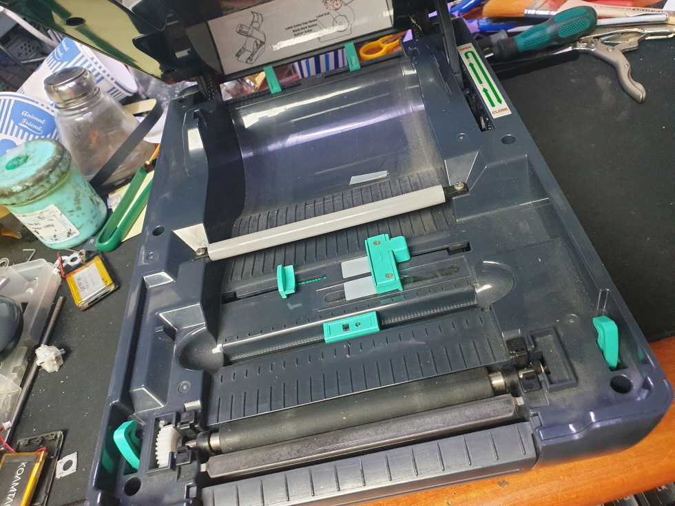 경기도 의왕에서 라벨 인쇄시 먹지가 같이 딸려 나옴으로 TSC TTP-247 라벨 송장 바코드 프린터수리
