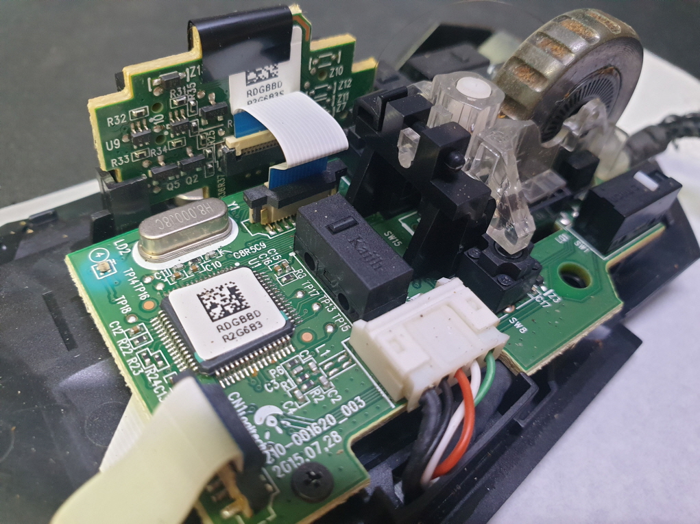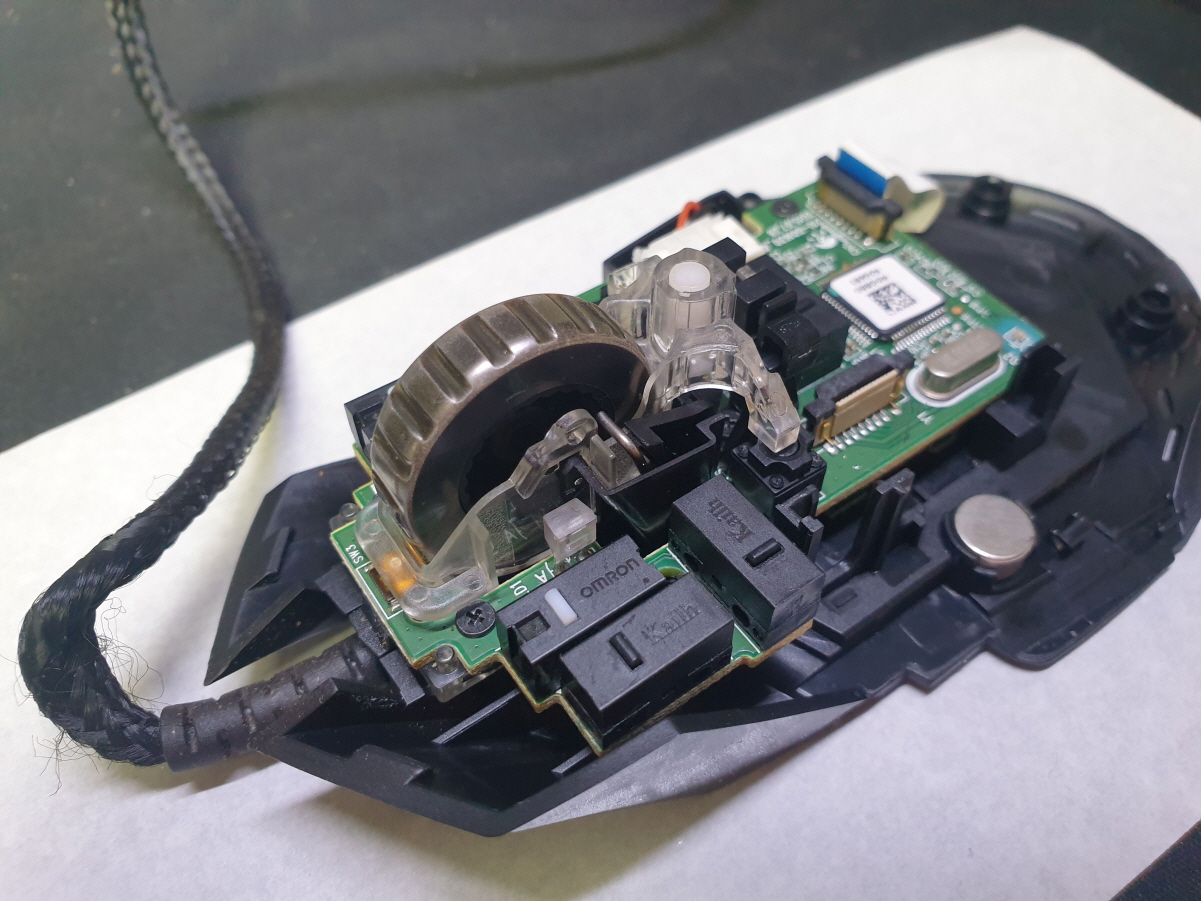 휠센서불량으로 휠센서교체수리 진행합니다. 휠센서불량은 휠팅김, 스크롤시 위아래로 잘 안움직이거나 아예 반응이 없는 경우 발생되는 현상이며 센서교체후 정상적인 사용이 가능합니다.