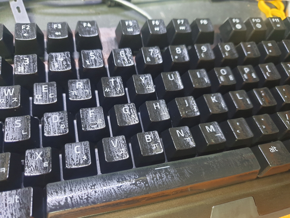 기계적으로 눌리지만 컴퓨터에선 눌리는 반응이 있는듯 없는듯하며 아예 안눌리거나 여러번 눌리는 증상은